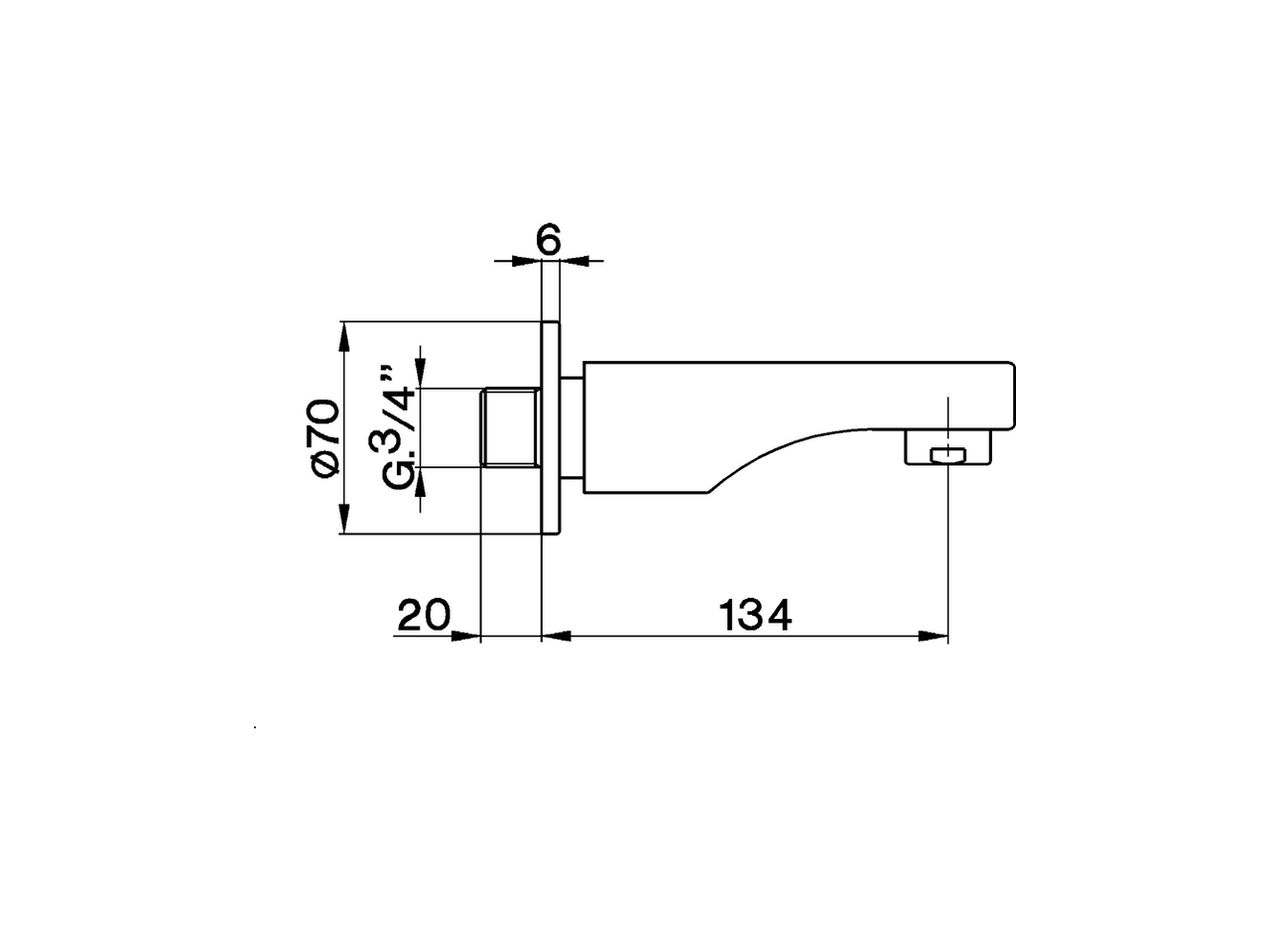 Bocca di erogazione,L.134 mm,attacco 3/4" M