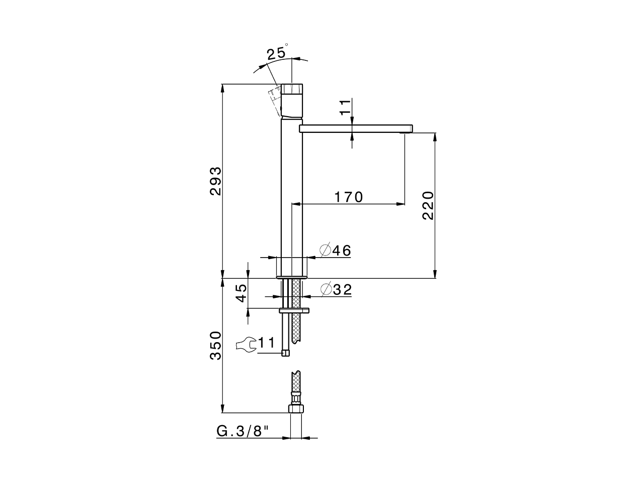 Miscelatore monocomando lavabo alto,senza scarico automatico,flex inox G.3/8",con leva marmo,Inox AISI 316L