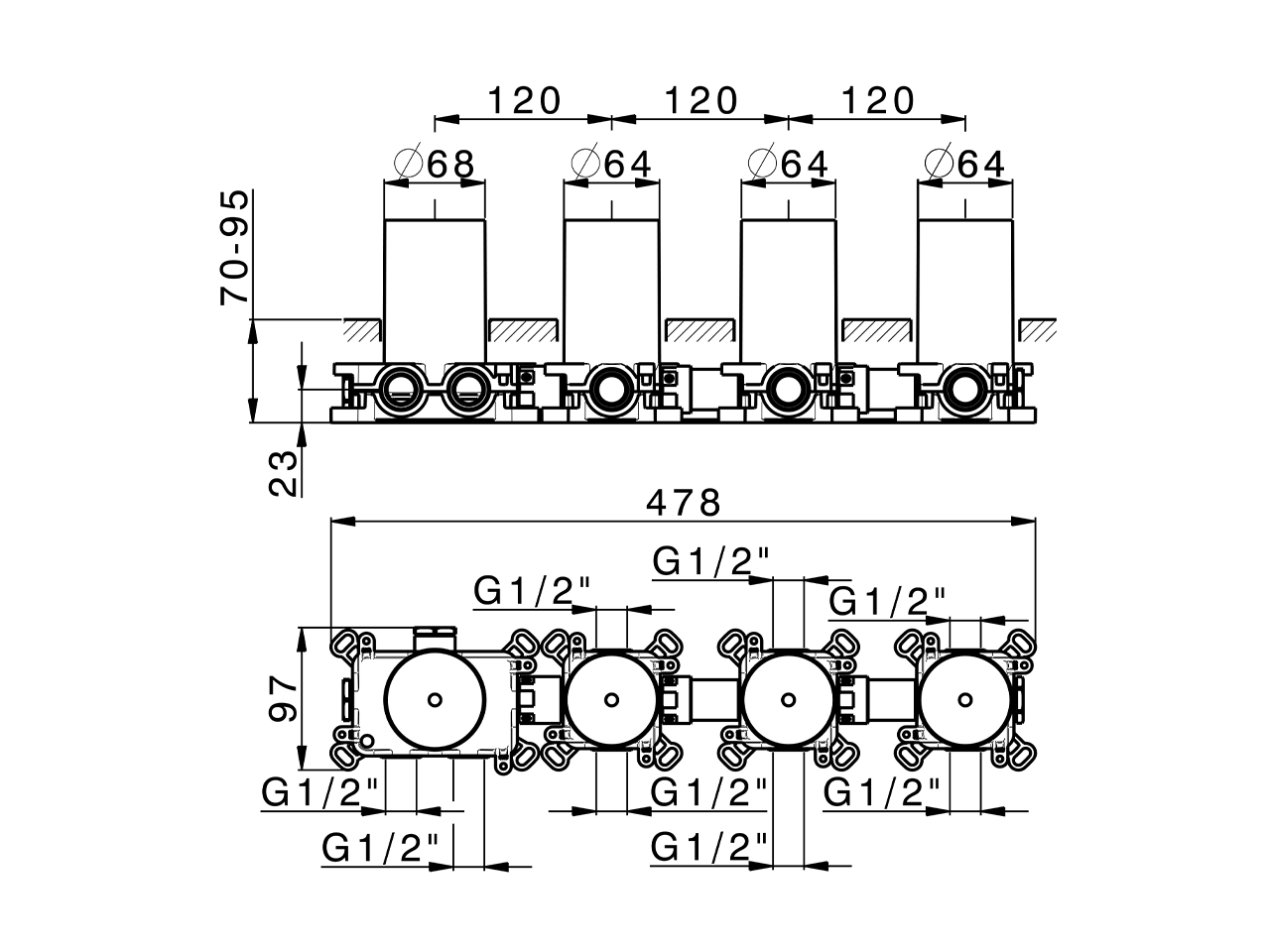 Parte incasso termostatico 3 funzioni PUSH - v1