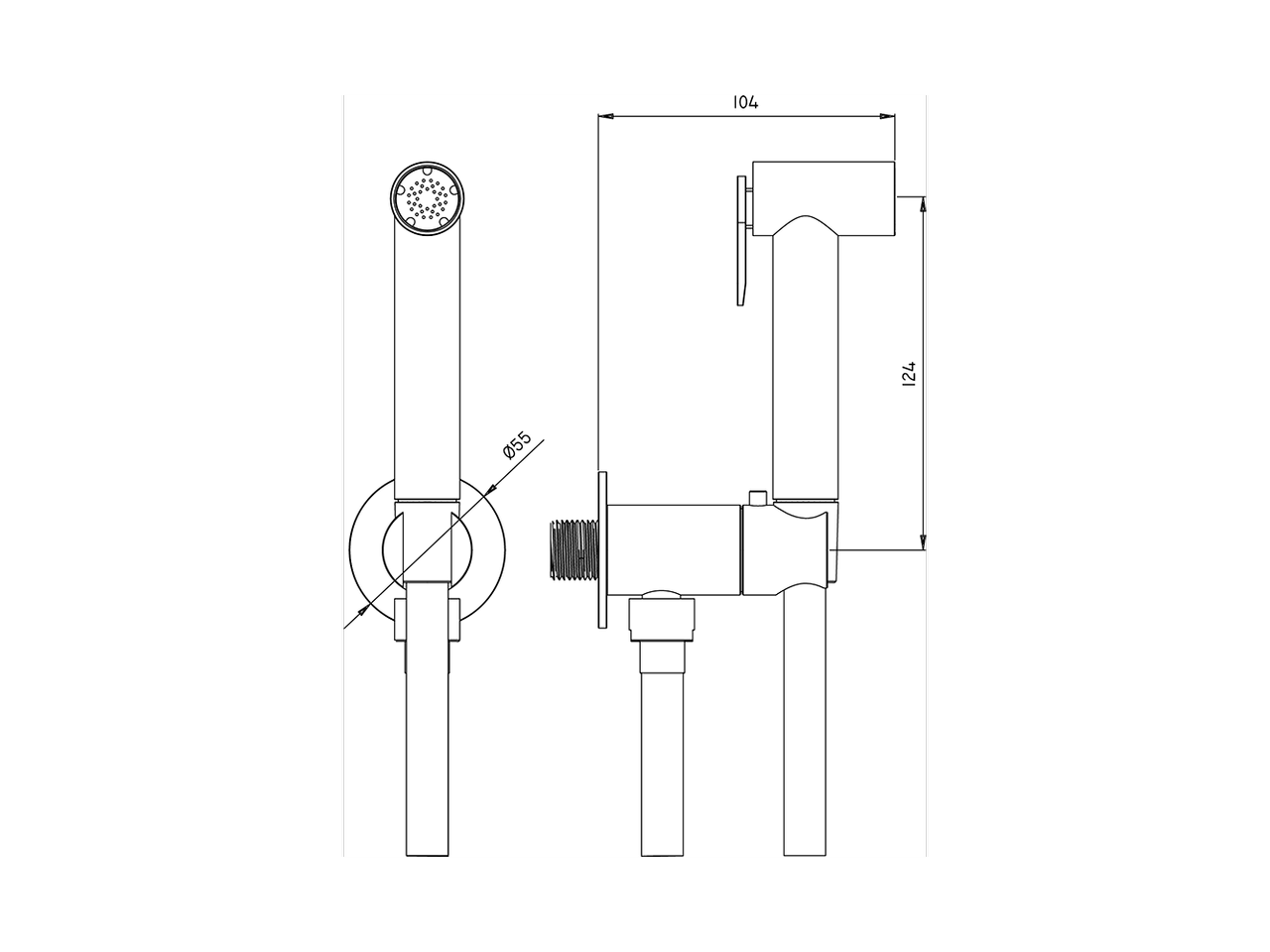 Set doccetta igienica completo,supporto murale tondo,apertura acqua singola,doccetta igienica in Ottone,flex PVC 120 cm